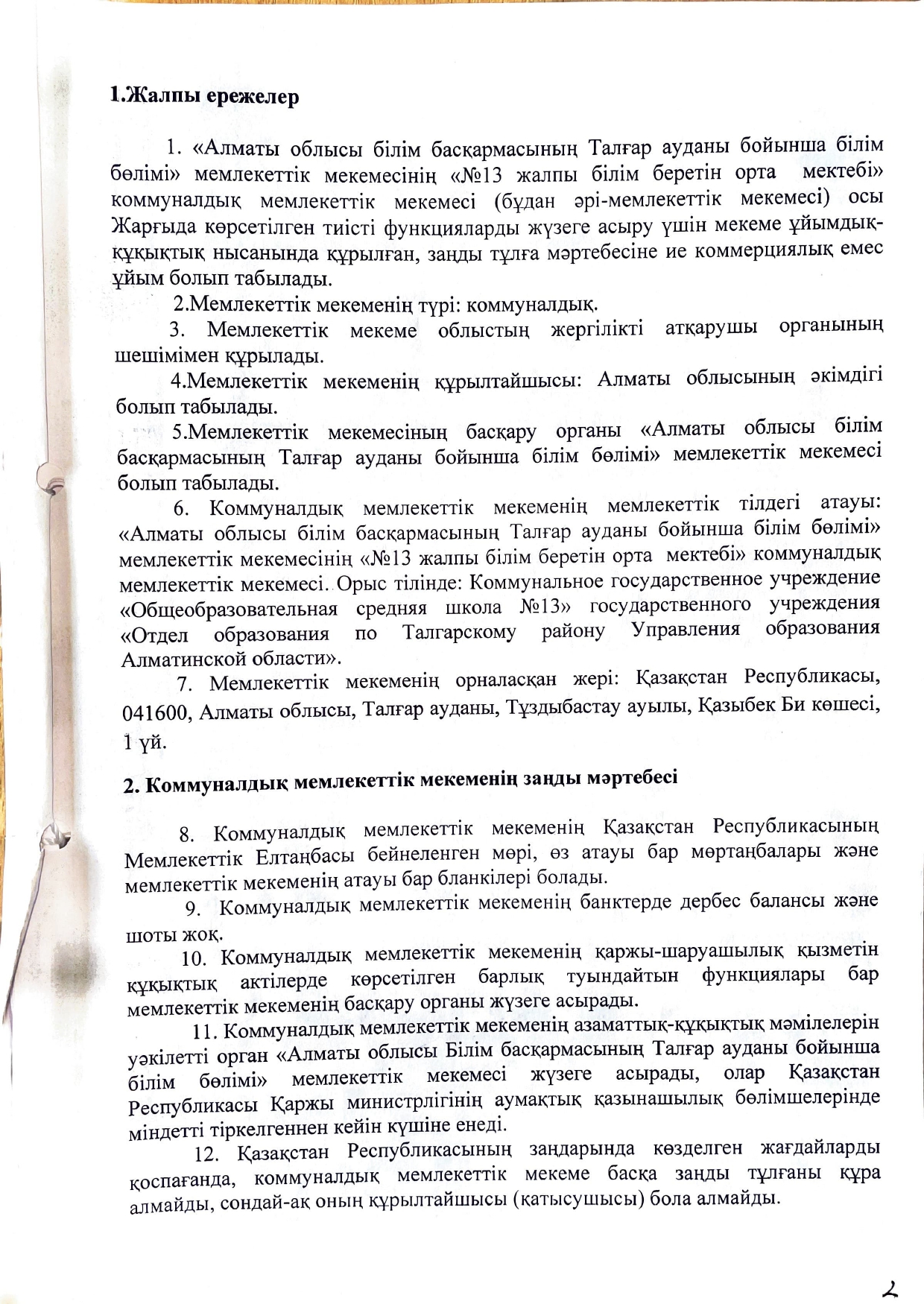 Талғар ауданы 13 ЖББОМ жарғысы » №13 орта мектеп