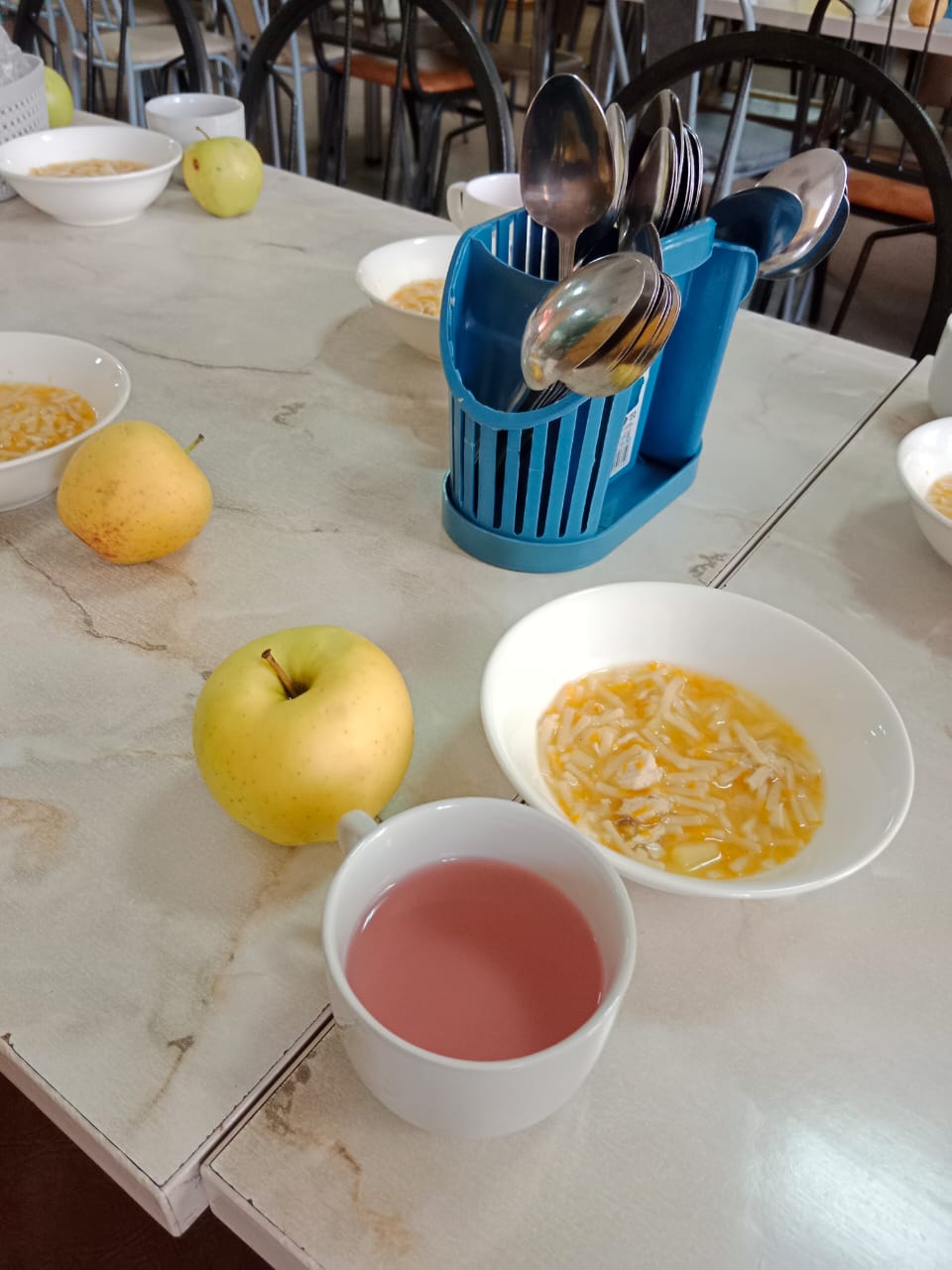 Ақ нан, үй кеспесі тауықпен, алма, кисель » №13 орта мектеп